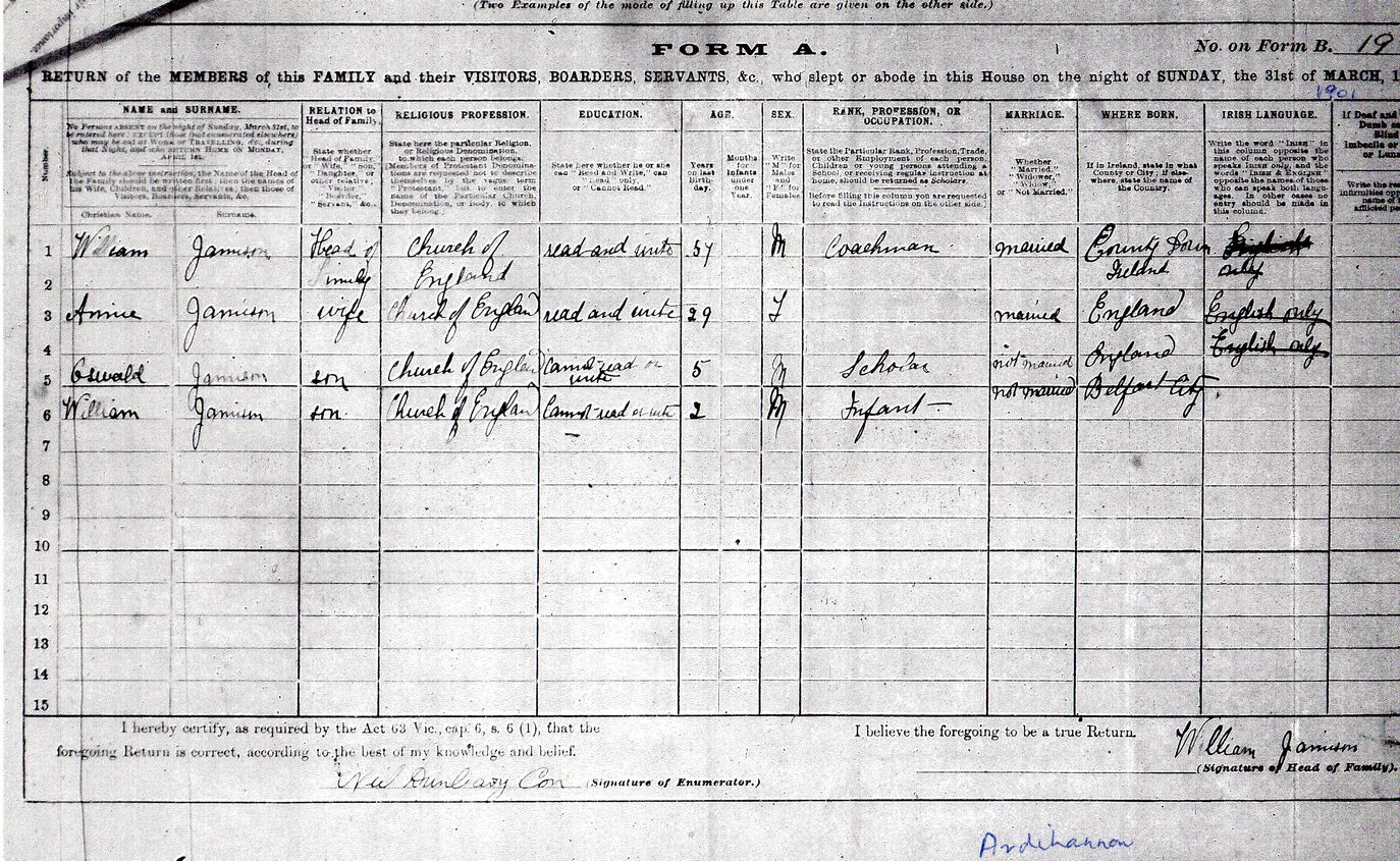 Extract for the family of William Jamison from the 1901 Northern Ireland Census